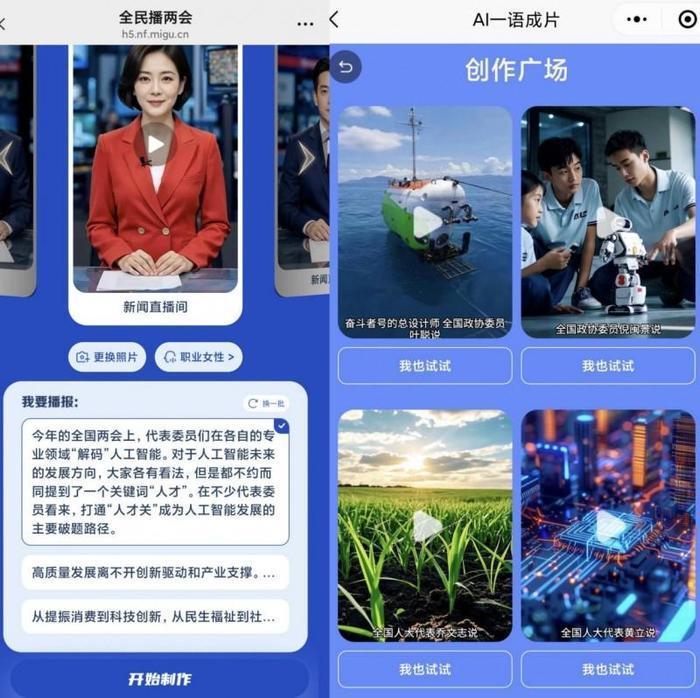 以本年两会时候的团结为例,咪咕彩媒与新华网联结推出“AI重生涯”模样,通过数智东说念主播报、视频彩铃等形式触达近2亿用户。一位频频用户制作的15秒两会播报视频,可能通过酬酢集聚被转发数千次,以至被主流媒体二次援用。这种传播力的底层逻辑,即是运营商集聚与互联网的深度交融。