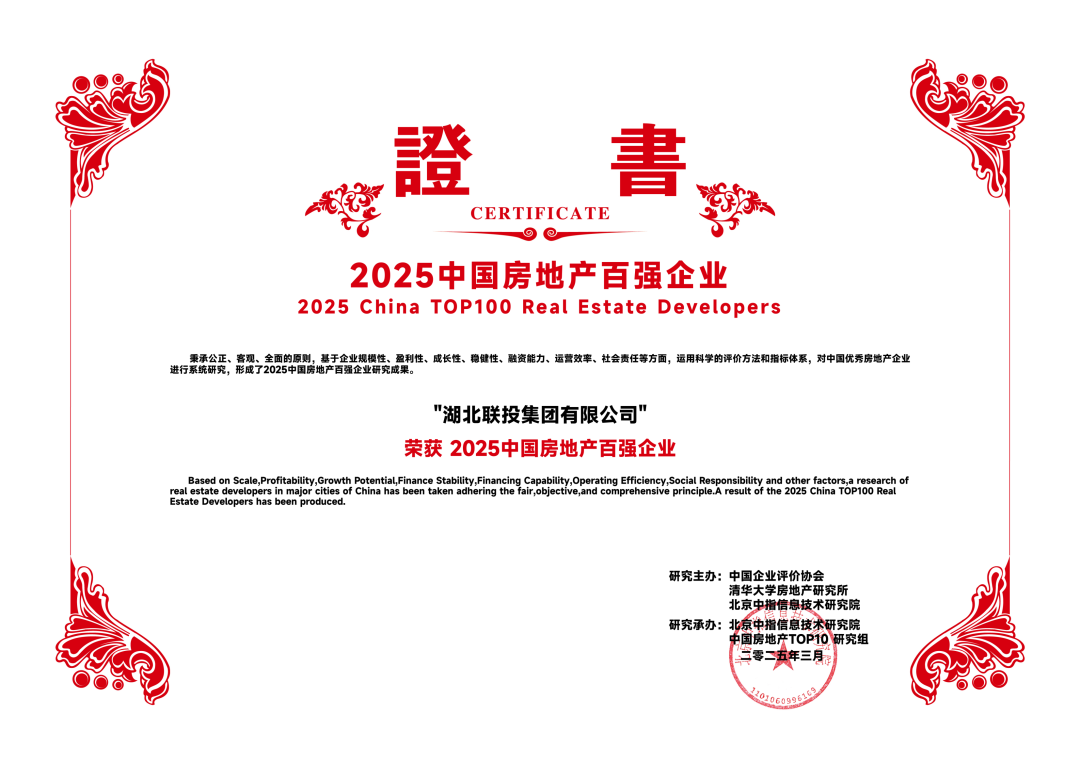 湖北联投以罕见的玄虚实力、正经的筹画发达及创新的发展风景,荣登“2025中国房地产百强企业TOP29”,较2024年名次再进7位。