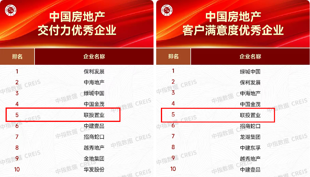 △联投置业荣登寰宇房地产怡悦度、托福力优秀企业“双TOP5”
