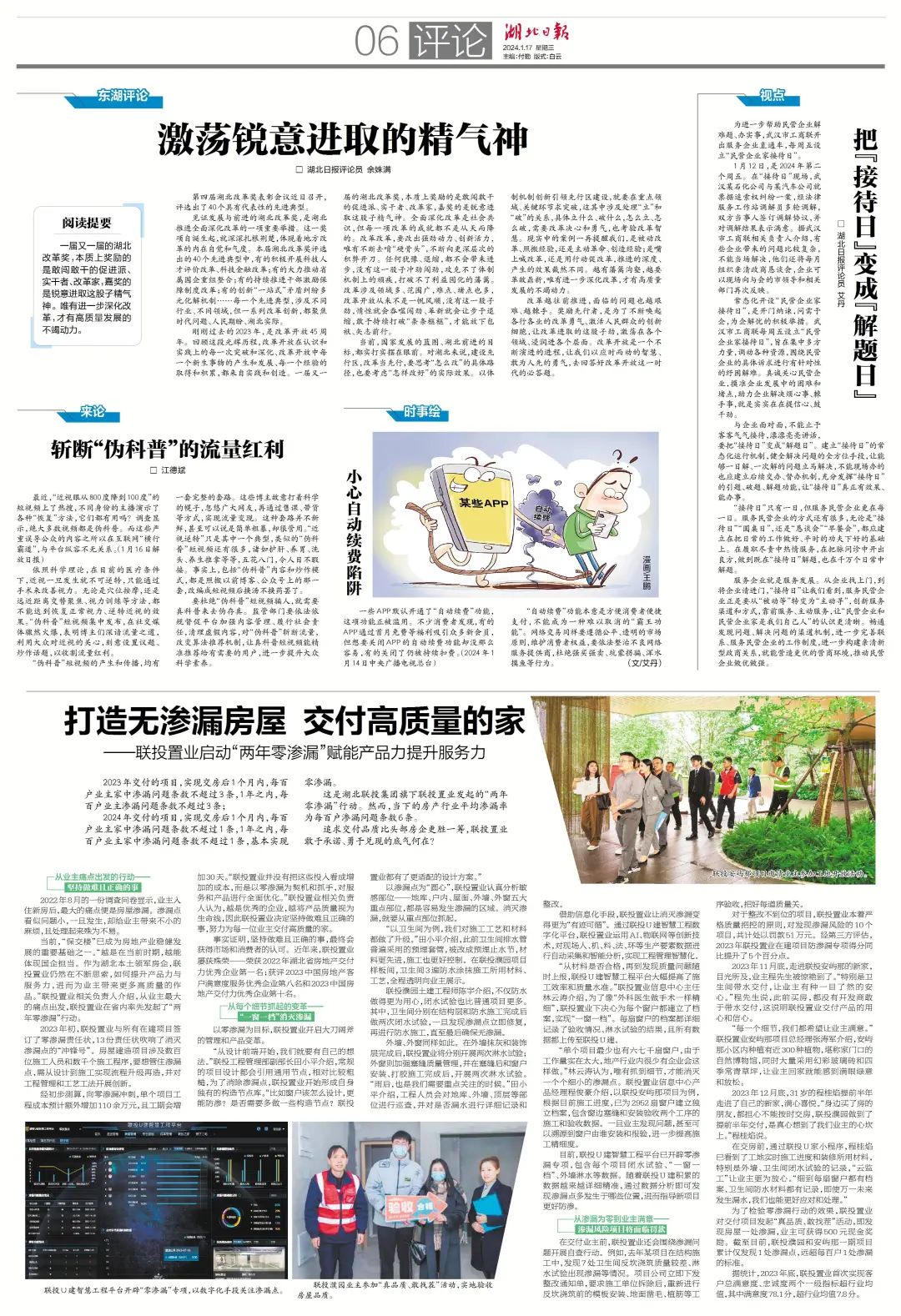 △ 湖北日报专题报谈联投置业零渗漏步履