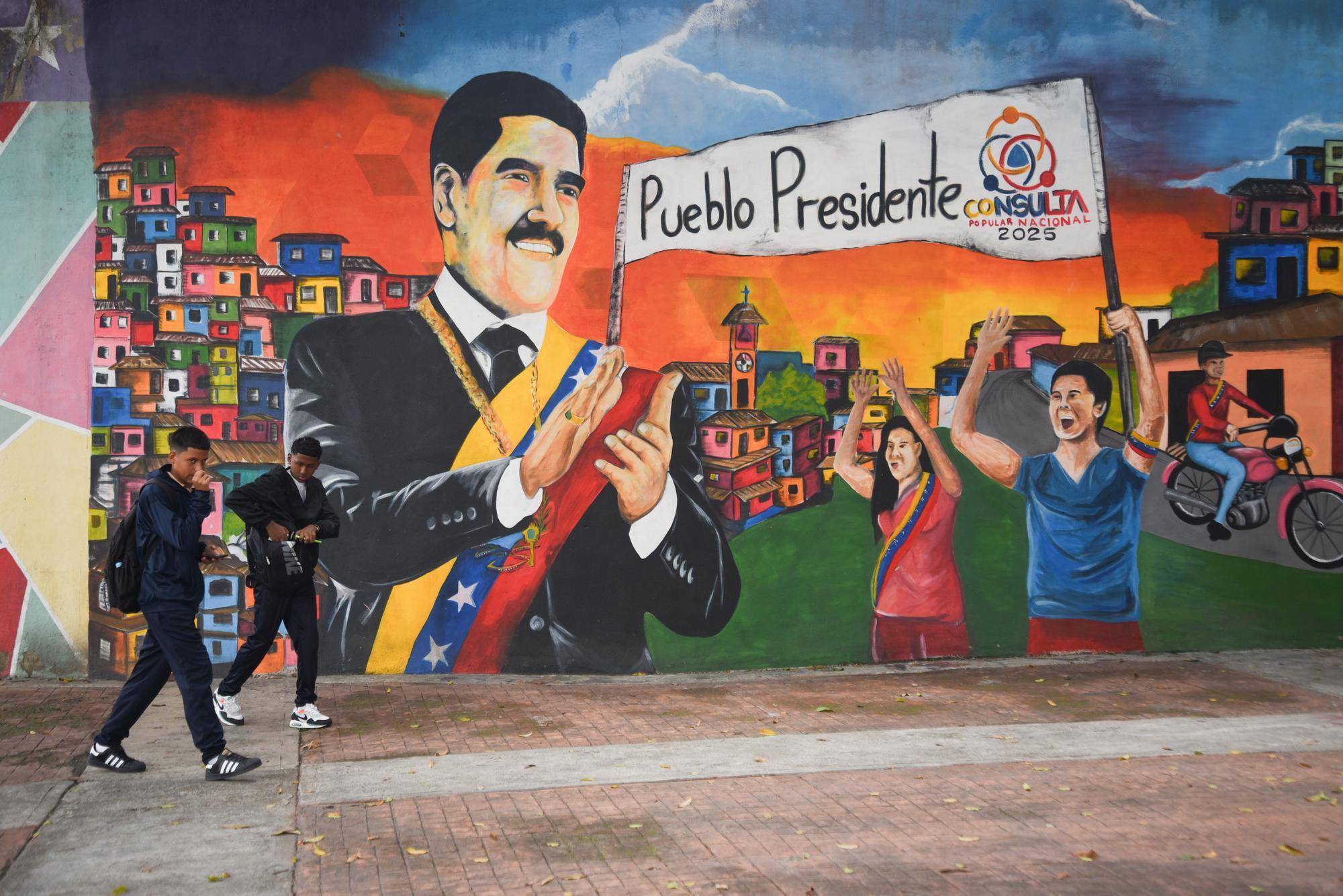 9月22日,在委内瑞拉都门加拉加斯,行东谈主从街头援助马杜罗总统的宣传标语前走过。新华社发(马科斯·萨尔增多摄)疑问三:会入侵委内瑞拉吗?