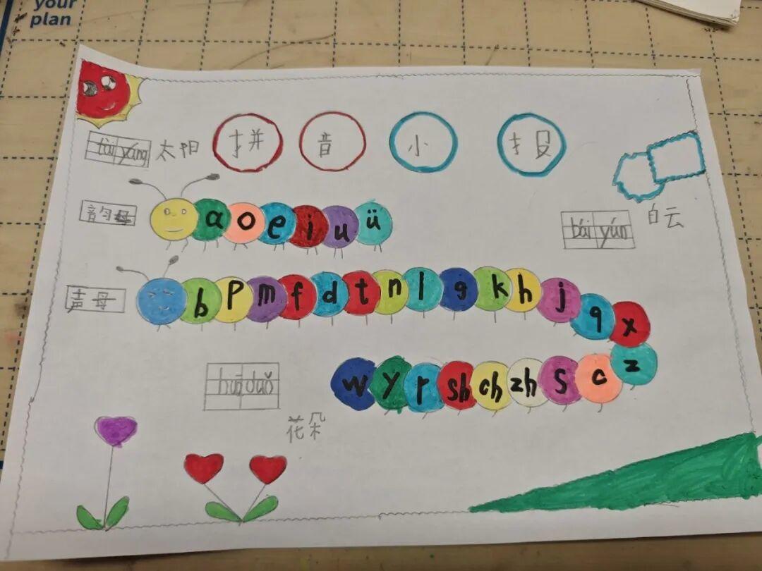 “拼音创意展”要领亮点纷呈,扇形拼音分类卡、彩色拼音链、拼音敬爱遨游棋等手使命品纷繁亮相。学生们将声母、韵母融开端工创作,在起首制作与互动体验中平定拼音学问,让学习成为充满乐趣的游戏。